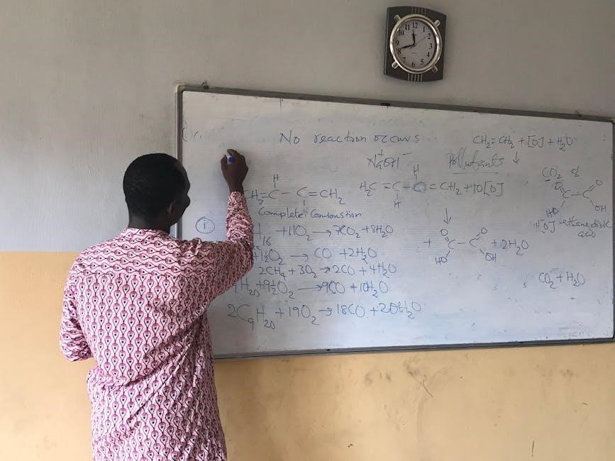 Comprehensive chemistry notes PDF resources extensively cover reaction types – synthesis, decomposition, single displacement, and double displacement – alongside equation balancing techniques. Materials geared towards Class 11 and Plus Two students often include detailed examples and step-by-step solutions. These PDF notes also explain concepts like reactants, products, and catalysts. Utilizing these resources aids in understanding stoichiometry and predicting reaction outcomes, crucial for success in chemistry coursework and exams.