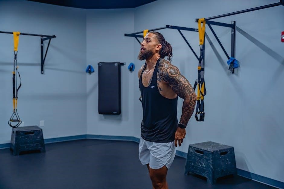 PDF guides often include detailed instructions, visual aids, and common mistake corrections for each exercise. Mastering these basics is crucial before progressing to more advanced TRX movements.
